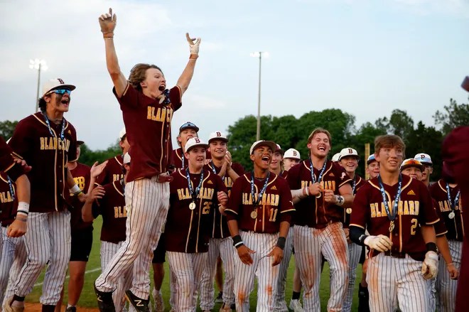 Here’s how the scenario begins, It’s bottom of the 7th inning, Game is tied at 5-5, The count is 3-1 with a runner at second and Brennan Milligan at bat had his sights set one thing as he steps up and hits into centerfield allowing the runner to get past third and score to seal the walkoff win for the Lions 6-5 over rival Tuttle and would win for the first time since 2019, It was also the third time the two teams met this season with Tuttle win the first two times. The Lions would start out by defeating Pryor 16-1 in the first round behind a solid performance by Milligan on the mound with five strikeouts and only allowing one run on four hits and had a home run on the day then it was on to the semifinals where they would defeat Marlow 5-1 behind a dominant performance from Jaxon Gless on the mound with 12 strikeouts on the day only allowing two hits and not giving up a run while Kale Miller lead the team in hits with four while Brayson Carter had two stolen bases leading up to the championship where they faced off against Tuttle. Milligan would have the walkoff single as well as leading the team with multiple hits tied with Gless. “Brayson got a hit before me and when he got to second I was thinking I was gonna bunt then gave me the go ahead swing and I got my pitch and hit it” said Milligan when asked about the anticipation of the walkoff. “When we stole second with Brayson Carter, I knew Milligan was gonna win us the ballgame, His brother pitched us to our first state title in 2015 and it was only fitting that he won the last one here in 2022” said head coach Josh Raney when asked about his reaction to Milligan’s walkoff. Blanchard would go to 34-20 all time in State Tournament play after the win and are tied 15th overall with Claremore and Sperry and that stat courtesy of iwasatthegame.