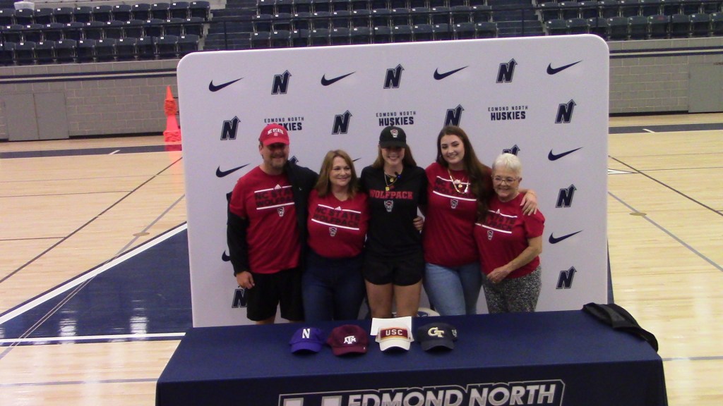 The anticipation was very high in Siberian Gym at Edmond North as Laci Steele would prepare to make her commitment announcement, Going into that evening she had narrowed it down to NC State, Northwestern, Texas A&M, USC and Georgia Tech. She started off with a speech before making her choice and when she went to make her choice she surprised everyone when she tossed the NC State hat to the side when she said quote “So I know a lot of my friends and teammates think I’m going to NC State” then she would pull another hat from under the table and then she would say “And I’m here to tell you you’re right baby!”