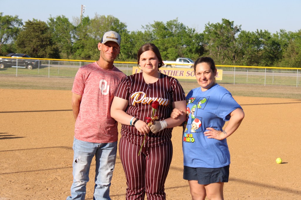 The Porum Lady Panthers came into this game looking to snap a two game losing skid while the McCurtain Lady Bulldogs was looking to snap a four game losing skid. The Lady Bulldogs would get on base first by error and on a single from Bailey Bennett and would even advance Watts to third on an error in left field, Despite a line out from Faith Resendiz it would set up Watts to score from third. Bottom of the first the Lady Panthers would start off slow but get in their rhythm when Rilee Miller and Leia Johnson would get on base with singles, Jailyn Smith would reach first base on error at short while Miller would score from third after an error to tie it and Johnson would advance to second. Mercedes Martin would reach first on error at first and scores Johnson to take the lead and advanced Mesa Coluston to second, Zoe Davis then steps up and drills a line drive to center field for an RBI double to score Martin and Coulston. Top of second the Lady Bulldogs would look to answer back, Elizabeth Davis would reach first on an error at second on a pop fly but three quick outs brought the top of the inning to a close. Bottom of the inning the Lady Panthers got on base on singles from Emma Murray and Gracie Tiger, Despite an out on a fielder’s choice at second on a ground ball from Courtney Pease, Emma Murray would score from third. Miller gets on base with a single and Pease advances to third on an error at second, Johnson comes up big at the plate again and this time on a linedrive RBI double to right field to score Miller and Pease, Coulston would reach first on an error at second and Johnson would score in the process while Martin also reached on error but would get to second and advance Coluston to third on same error, Davis then comes up with another RBI double to center field to score Coluston and Martin. Top of third the Lady Panthers defense would come up big to keep runners from getting on at first, Bottom of third Pease would manage to get on at first but the inning would come to a close after a fielder’s choice at second brought up third out. Top of fourth the Lady Bulldogs would start to find some rhythm at the plate with a single from Bennett to get on first while Avrie Ford would then reach first after an error in left field on a fly ball and would also advance Bennett to second. Lady Panthers would then come up big on a fielder’s choice and line out to get the next two outs. Bottom of fourth Johnson would get on with a double and would advance to third on an error in left field, Smith would come back up to the plate and get an RBI single on a groundball to left field to score Johnson and that would be the ball game as the Lady Panthers would win 11-1 in the fourth inning.